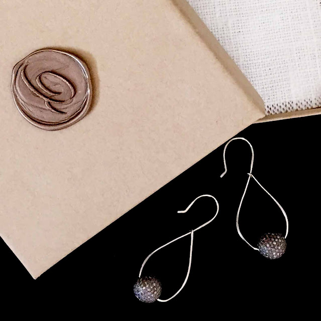Alina is meticulous about all aspects of design, including her packaging. The informal kraft jewelry box with custom wax seal is lined with elegant Belgian linen, which she hand-frays and pre-washes in her studio.